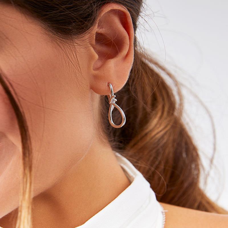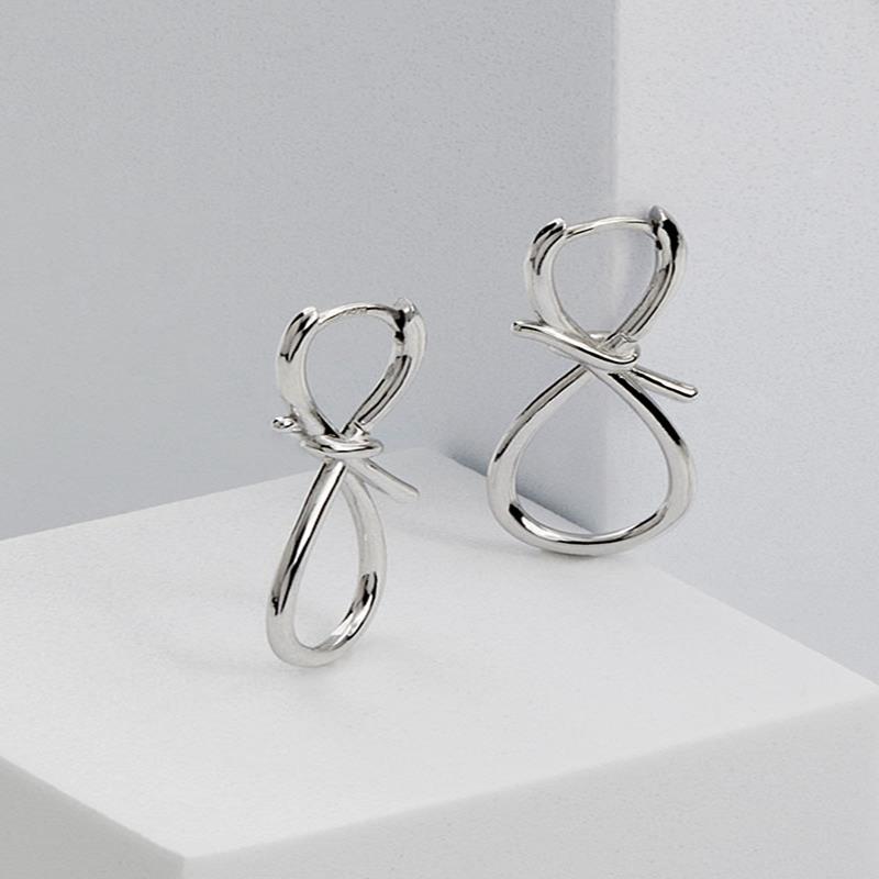 Pendientes de plata rodiada de la marca Marea, colección Eternity, que inspirado en el infinito, adquiere esta forma en un pendiente largo y rígido