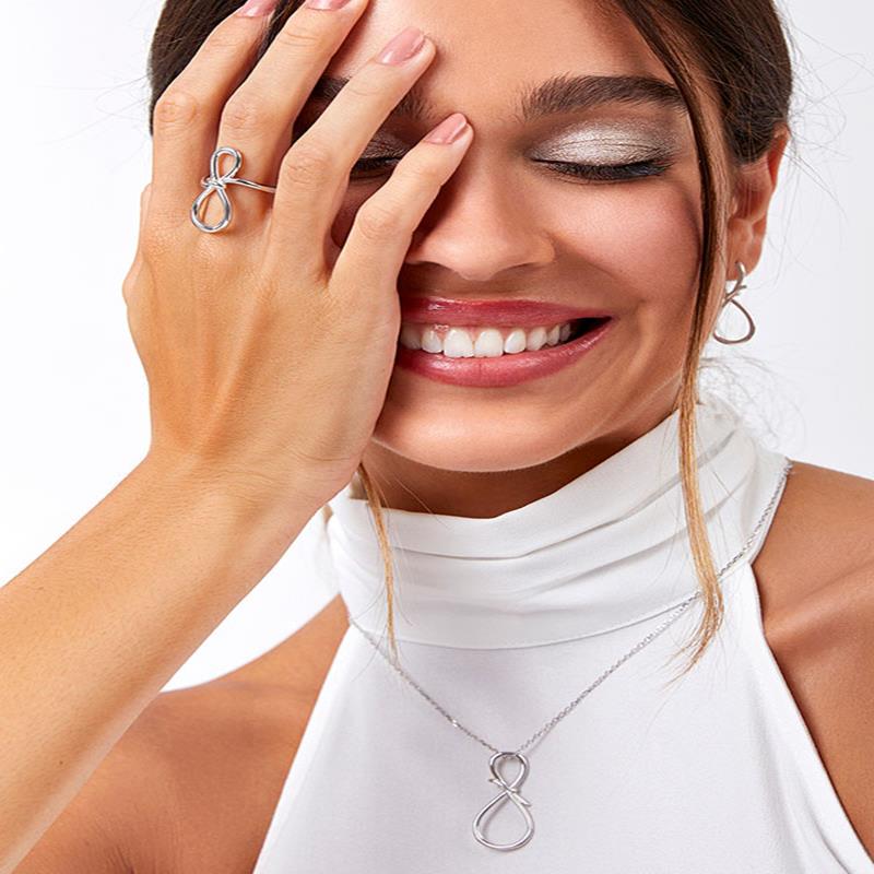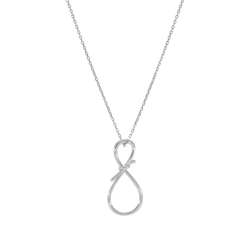 Gargantilla de plata rodiada, Marea, colección Eternity, con colgante con símbolo de infinito anudado al centro.
